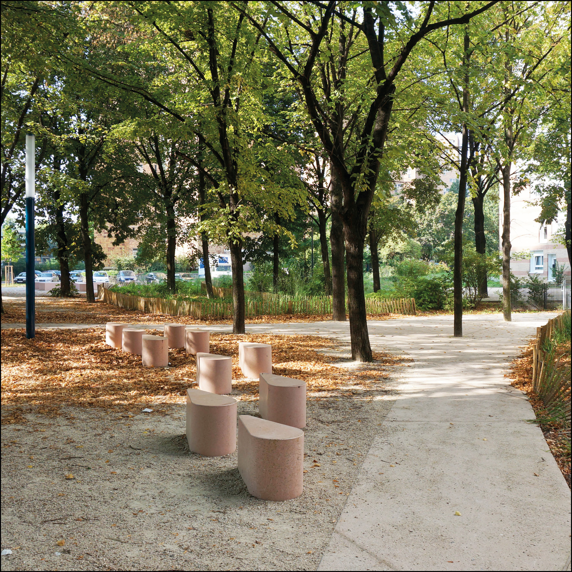 Châtelain Square will be a benchmark in the transformation of public space in Ixelles. The evolution of the mobility is a driver to sustain the affordance of this public space. Our proposition holds a dual challenge: permitting the locations' re-appropriation by local users, while sustaining active pursuits and daily functions, and giving living things back their rightful place in the city. The approach of a "canopy space", where new uses may install and deploy under the cover and protection of, as well as in the vicinity of, majestic trees. The XXL furniture customized for this site propose a new modes of co existence between human and non human in the city.