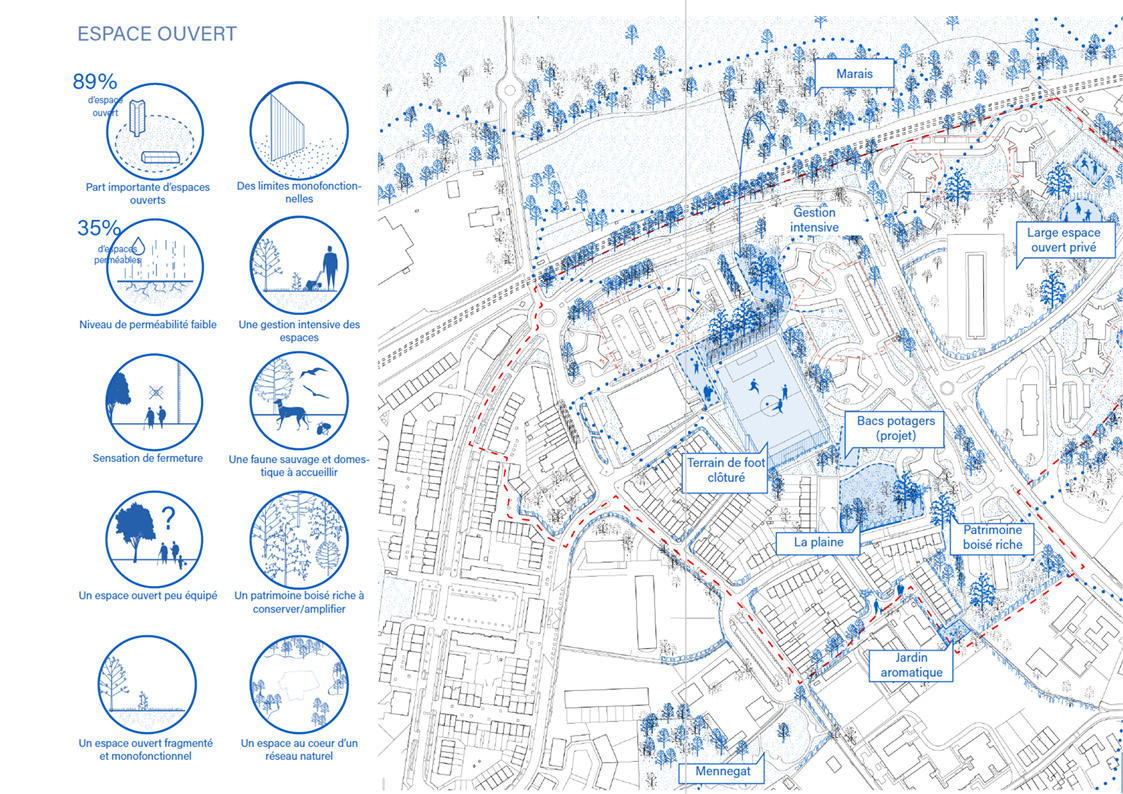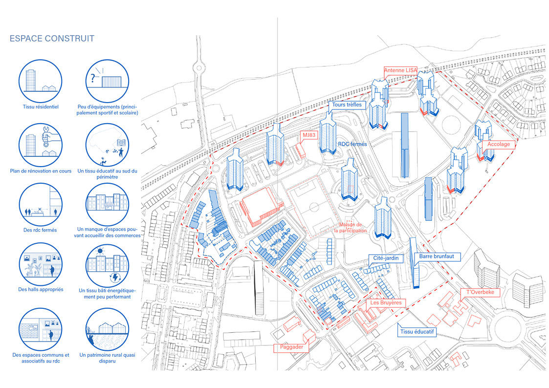 Ce programme a été élaboré au fil d'analyses, de rencontres et d'échanges, il s’agissait de comprendre et discerner les qualités inhérentes du site au travers trois thématiques: L'espace construit, l'espace ouvert et l'espace vécu.