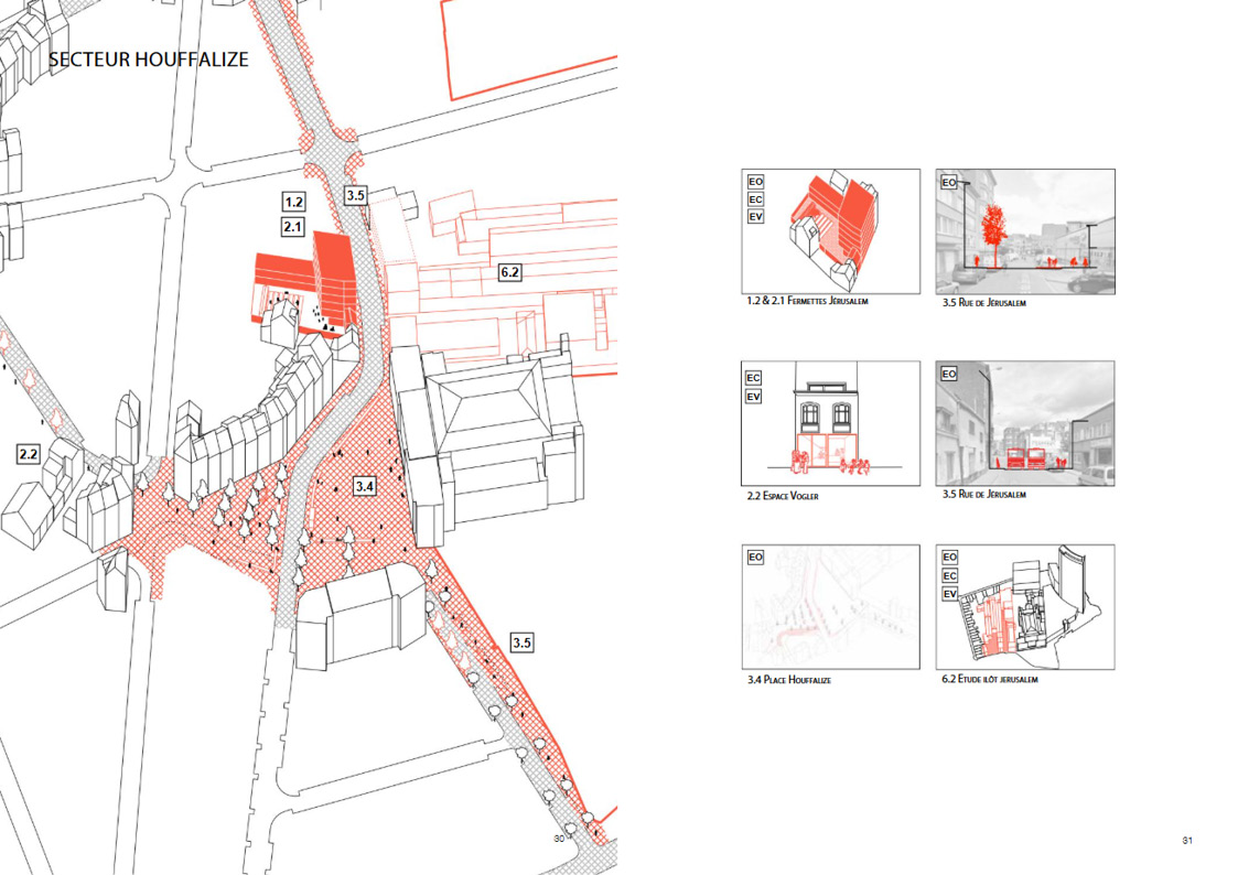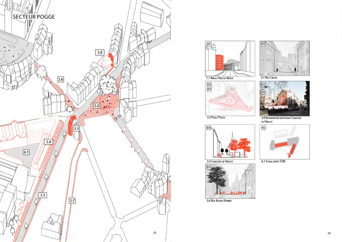 The “Pogge” sustainable neighborhood contract gives pride of place to public-space initiatives, with stated objectives of strengthening the status of Pogge Square, activating Houffalize Square, promoting urban ecology, encouraging active mobility, raising awareness about public cleanliness, and providing alternatives to parking in order to design inclusive public spaces